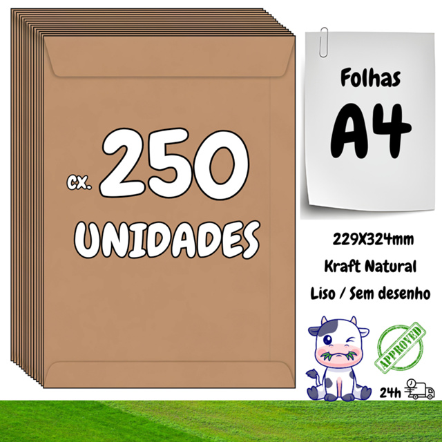 | 250 Envelopes A4 Kraft Saco Liso Armazenar Transportar Organizar Pr... este produto | R$ 79,00 | 28% | 4.9/5 | 151 |
