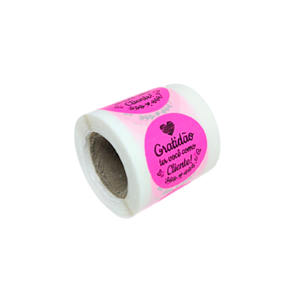 ***NÃO PERSONALIZAMOS*** Etiqueta Adesiva Gratidão ter você como cliente 01 Rolo com 250 Etiquetas. Ideal para personalizar suas encomendas. Especificações: Material: Couchê Adesivo Tamanho: 3,2 cm Redondo Cor: Pink