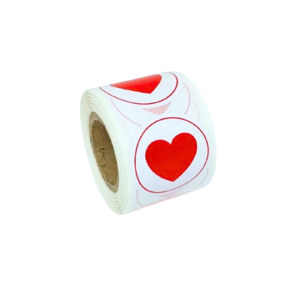 250 Etiquetas Adesivas Para Embalagens Coração Redondo Vermelho