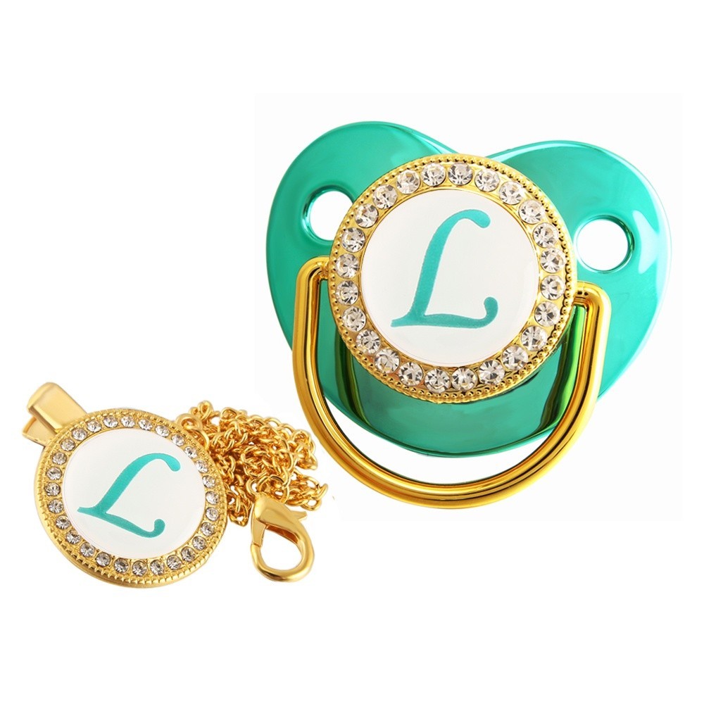 26 Nome Carta Inicial Luxo Verde Baby Pacifier Dummy Soother Nipple 0-18 Meses