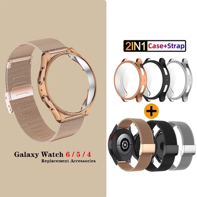 2em1 Case + Strap Faixa De Aço Inoxidável Capa Macia De TPU Para Relógio Samsung Galaxy 7 6 5 Pro 4 40mm 44mm/43mm 47mm