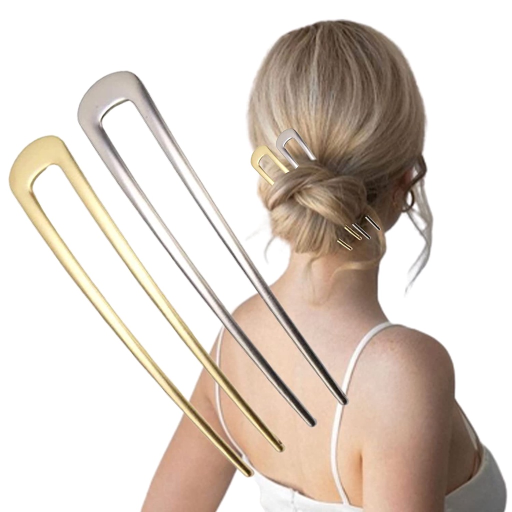 2Pcs Alfinetes Para Cabelos Franceses Em Forma De U Finos 2 Prong Updo Chignon Acessórios Femininos