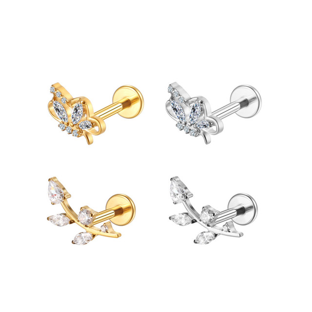 2PCS Kit Piercing Helix Conch Labret Titânio Pvd Asa Zircônia Cravejada