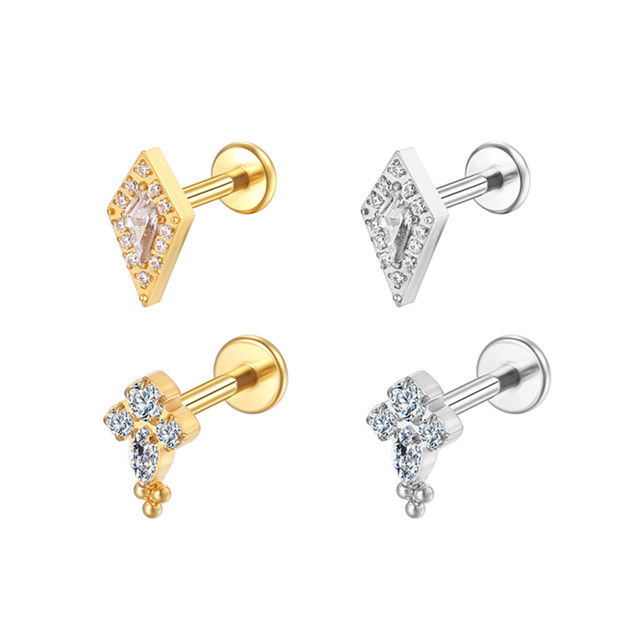 2PCS Kit Piercing Helix Conch Tragus Labret Titânio Pvd 4 Zirconias 1.2x8