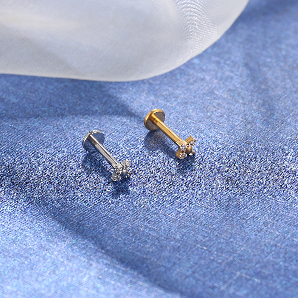 2PCS Kit Piercing Helix Tragus Conch Nariz Boca-Medusa Labret Aço Cirúrgico PVD com Três Zircônias Ponto de Luz