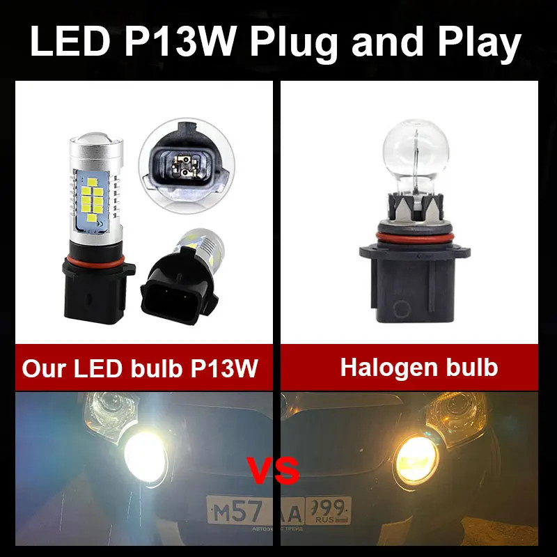 Trabalho para para Mitsubishi Mirage (2012-) para Mitsubishi Outlander III (2012-2015) para Mitsubishi Shogun Sport 3 (2015-) (com farol halógeno) Especificação : *Tipo de soquete: P13W (PSX26W / SH23W / 12277) *Tensão: DC 12V *Potência nominal: cerca de 5W *Vida útil: 50.000 horas *Fluxo luminoso: 1500LM/1PC, 3000LM/2PCS * Chip LED: 30 Chip SMD 3030 (6pcs 3030 chips LED de alta potência na parte superior,24pcs 3030 chips LED de alta potência na lateral) *Temperatura de cor: 6000K Branco/Ice * Uso: Lámpada de névoa, luz de correção diurna DRL, luz de condução Característica: * Este item LED lâmpada substituirá a lâmpada de vidro de halógeno estoque * Instalação plug & play fácil * A nova tecnologia de LED reduz o consumo de energia de 43% para 81%. * Lente convexa na parte superior, com a função de luzes focantes. * With metal shell, makes the bulb work under low heat. * Funciona corretamente em mais recentes 80%/carros europeus com fiação OBC CAN Bus (sem mensagem Erro); se mostrar mensagem de erro, você pode precisar de um Resistor de Carga instalado no circuito. DICAS: Se as lâmpadas LED não acenderem após a instalação. basta reinserir oposto (porque a lâmpada LED tem polaridade como uma bateria.) Pacote incluindo: Lâmpadas LED de 2 peças