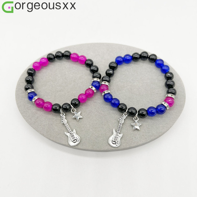 2pcs/set Vintage Couple Beads Pulseiras De TV Correspondência De Meninas Guitarra Música Amigos Jóias Pulseira Presentes