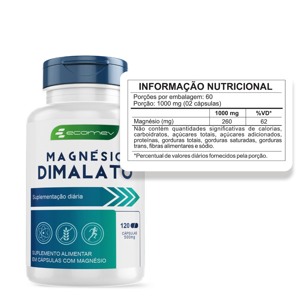 2Un Magnesio Dimalato 500mg Puro Materia Importada Kit 4 Meses Tratamento Ecomev