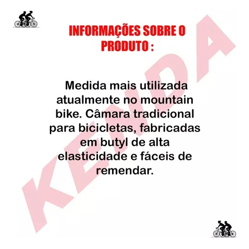 🚴♂️ Par de câmaras de ar kenda 26x1.90/2.125 – bico grosso resistente 🚴♀️ 🔧 Durabilidade e resistência para suas pedaladas 💡 Diferenciais das câmaras de ar kenda ✅ Borracha de alta qualidade, garantindo maior resistência contra furos e desgaste ✅ Válvula americana (bico grosso), facilitando o enchimento e compatível com bombas convencionais ✅ Compatibilidade com pneus de 26x1.90 a 26x2.125, além de ser adaptável a pneus 1.50 ✅ Ideal para uso em bicicletas de mtb, passeio e urbano 📋 Especificações técnicas Marca kenda Medida 26x1.90 / 2.125 (compatível com pneus 1.50) Válvula tipo americana (bico grosso) Produto de alta resistência e durabilidade 📦 itens inclusos 2 câmaras de ar kenda 26x1.90/2.125 ⚠️ Atenção Produto original kenda, acompanha nota fiscal Pronto para envio imediato 🚵♂️ Mais segurança e desempenho no seu pedal com as câmaras de ar kenda! 🚴♂️🔥