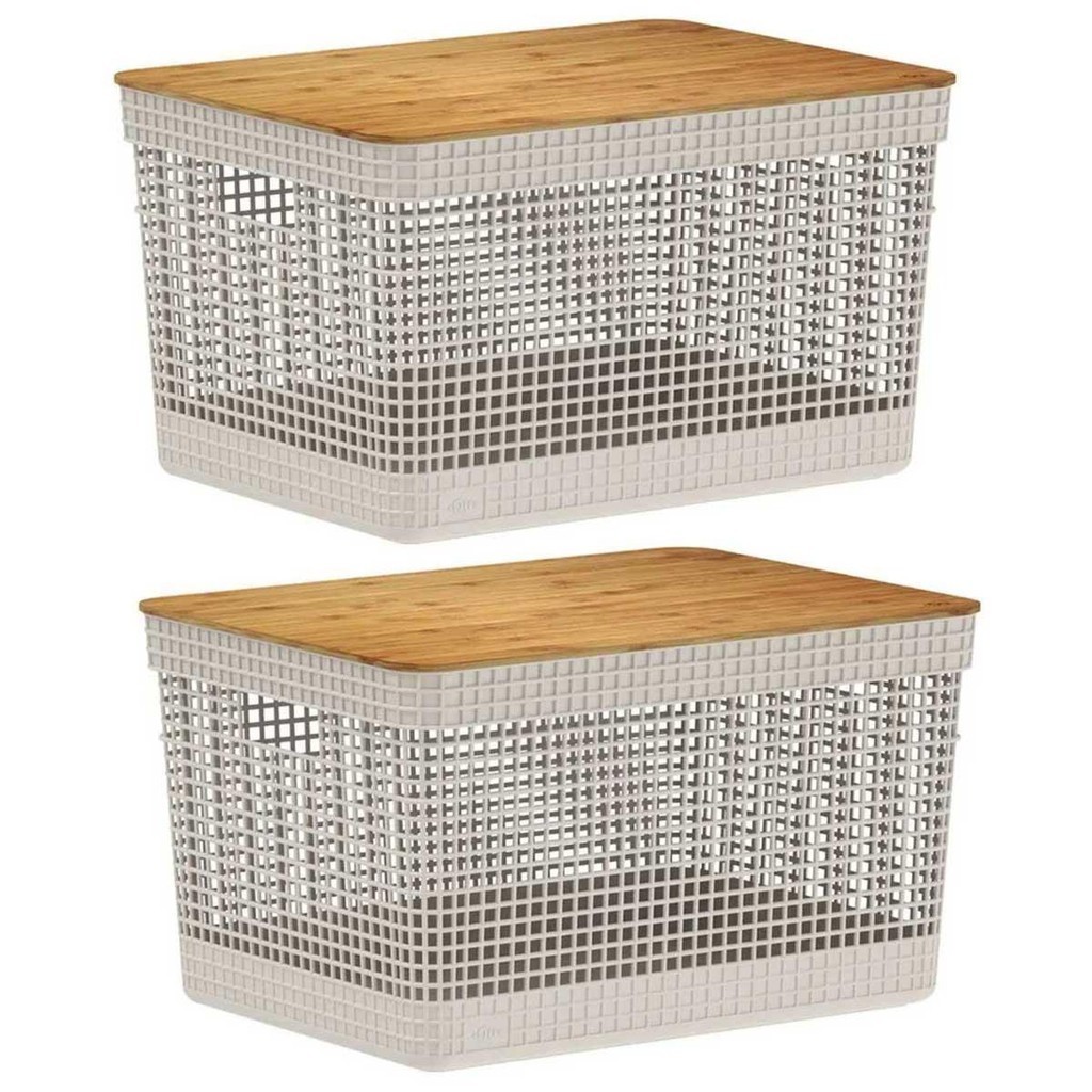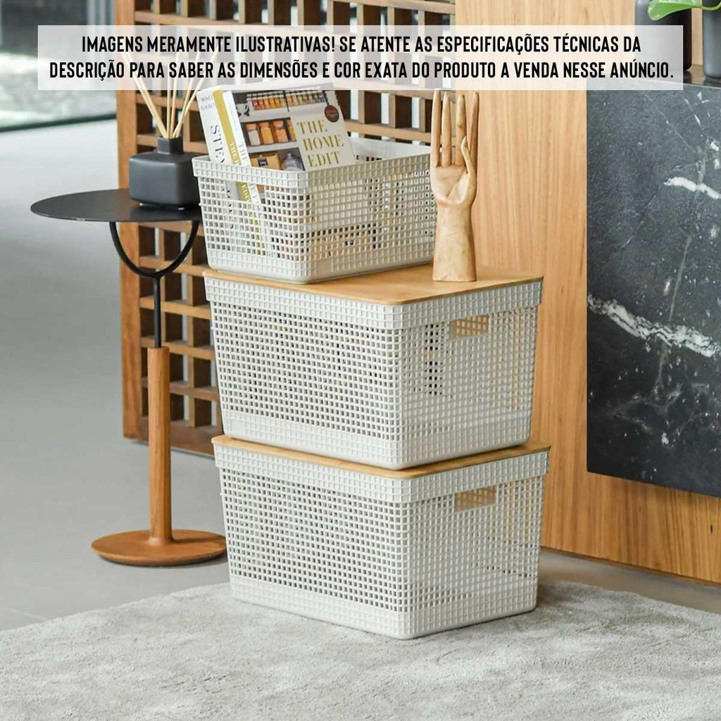 2x Cesto 20L Organizador OU Grid Bege com Tampa de Bambu