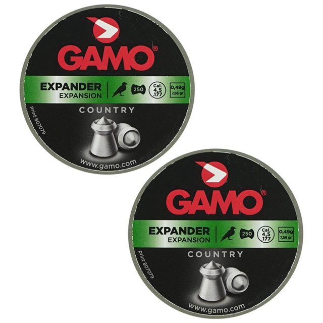 Produto de uso exclusivo em práticas esportivas. O uso do produto exige treinamento e equilíbrio emocional. Deverá ser guardado em lugar seguro e fora do alcance de terceiros. Os produtos aqui listados servem apenas para uso recreativo, ou seja ***NÃO*** letal. A Gamo é uma marca renomada no Brasil, fabricante espanhola com sede em Barcelona, Espanha e se caracteriza por ser a maior produtora de armas de ar na Europa e a maior de pelotas do mundo. A empresa foi fundada em 1959, como El Gamo, e a produção de armas de alta performance começou em 1961. Reconhecida também por produzir munições de excelente qualidade, a Gamo produz Chumbos que proporcionam alto desempenho para sua arma de pressão. O Chumbinho modelo EXPANDER EXPANSION COUNTRY faz jus ao nome pois é voltado para atividades de alto rendimento, indicado principalmente para Carabinas de maior potência. ESPECIFICAÇÕES TÉCNICAS: - Marca: Gamo - Calibre: 4.5mm (.177) - Modelo: Expander - Expansion - Quantidade: 250 unidades - Peso: 0,49 gramas - Gramatura: 7,56 grains - Comprimento: 6,6mm - Peso bruto da lata: 136 gramas ITENS INCLUSOS: - 02 Lata de Chumbinho Gamo Expander 7,56gr 4.5mm 250un. Observação: Garantia de 03 meses mediante defeitos de fábrica. INFORMAÇÃO: Os equipamentos, peças e acessórios aqui listados são de uso exclusivo em armas de pressão (gás comprimido ou mola), airsoft, paintball, esferas plásticas (BBS) e estão em conformidade com a legislação brasileira de USO PERMITIDO "É permitido o uso de armas de pressão por ação de gás comprimido ou por ação de mola, com calibre igual ou inferior a seis milímetros (6mm ou 6.0mm), e das que lançam esferas de plástico com tinta, como os lançadores de paintball." Conforme parágrafo único do Art. 11 do DECRETO Nº 11.615, DE 21 DE JULHO DE 2023. A venda desses itens é feita somente para maiores de 18 anos mediante a comprovação de maior idade. Atenção: O envio de Armas de pressão e Airsoft é realizado somente por transportadora. Caso tenham dúvidas entrar em contato.