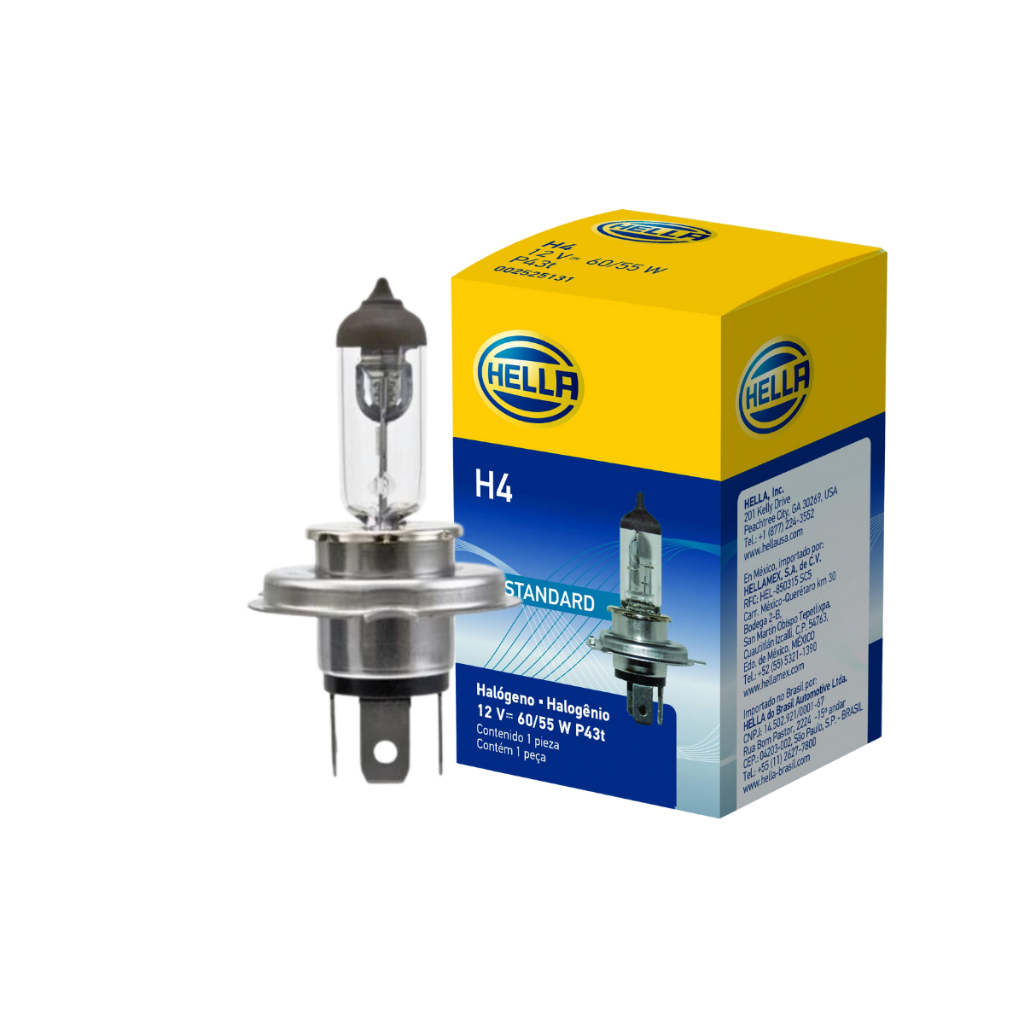 2X Lâmpada Halogena Hella H4 Automotiva 12V 60/55w Farol Baixo Moto E Carro 2 Unidades