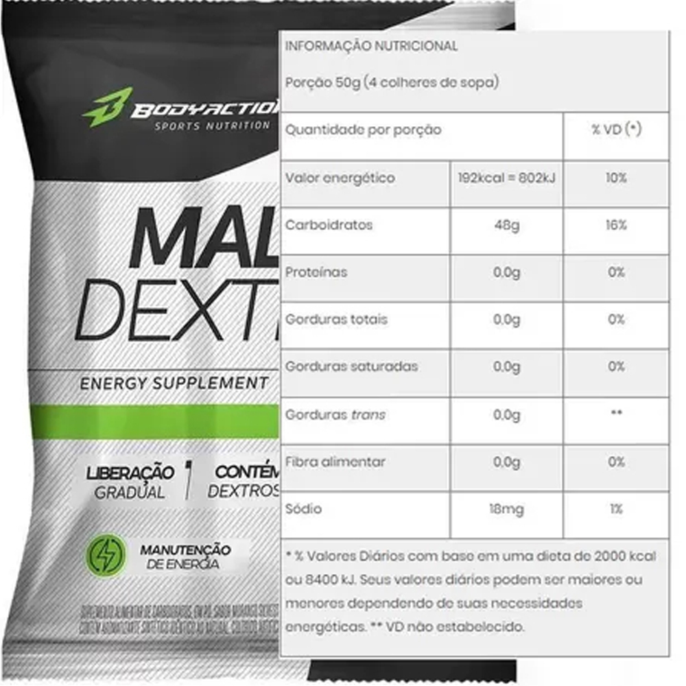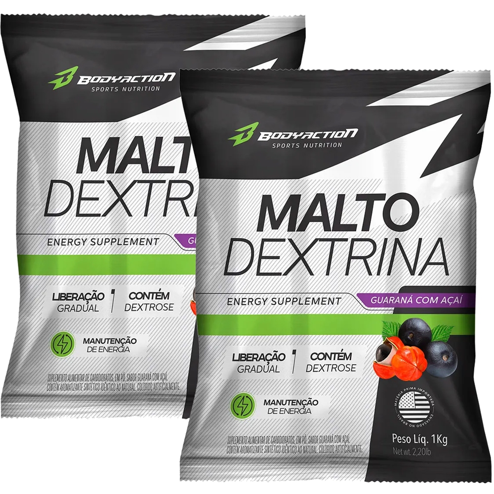 COMPOSIÇÃO DO ANÚNCIO 2x MALTODEXTRINA - 1KG - BODY ACTION DESCRIÇÃO DO PRODUTO "MALTODEXTRIN: A ingestão de Maltodextrin BodyAction antes dos treinos ou competições fornece energia porque aumenta o estoque de glicogênio no organismo melhorando a performance e retardando a fadiga. A ingestão após os treinos ou competições repõe o glicogênio gasto nestas atividades. Informações Adicionais: Por ser um suplemento de liberação gradativa (time-release), a Malto Dextrin da Body Action é indicada como suporte energético para treinamentos mais longos, retardando a fadiga precoce e balanceando a reposição do glicogênio muscular. Apresentação: Saco com 1kg. Ingredientes: Natural: Maltodextrina. Frutas vermelhas: Maltodextrina, Dextrose, Acidulante Ácido Cítrico, Aroma Idêntico ao Natural de Frutas Vermelhas, Corante Vermelho Bordeaux. NÃO CONTÉM GLÚTEN. COLORIDO ARTIFICIALMENTE. Guaraná com Açaí: Maltodextrina, Dextrose, Aroma Idêntico ao Natural de Guaraná com Açaí, Acidulante Ácido Cítrico e Corantes Caramelo, Vermelho Bordeaux e Azul Brilhante. NÃO CONTÉM GLÚTEN. COLORIDO ARTIFICIALMENTE. Jabuticaba: Maltodextrina, Dextrose, Acidulante Ácido Cítrico, Aroma Idêntico ao Natural de Jabuticaba e Corantes Vermelho Bordeaux e Azul Brilhante. NÃO CONTÉM GLÚTEN. COLORIDO ARTIFICIALMENTE. Laranja com Acerola: Maltodextrina, Sacarose, Aroma Artificial de Laranja com Acerola, Acidulante Ácido Cítrico, Corante Amarelo Crepúsculo. NÃO CONTÉM GLÚTEN. COLORIDO ARTIFICIALMENTE. Limão: Maltodextrina, Dextrose, Aroma Idêntico ao Natural de Limão, Acidulante Ácido Cítrico. NÃO CONTÉM GLÚTEN. Tangerina: Maltodextrina, Dextrose, Acidulante Ácido Cítrico, Aroma Idêntico ao Natural de Tangerina, Corante Amarelo Crepúsculo. NÃO CONTÉM GLÚTEN. COLORIDO ARTIFICIALMENTE. Morango Silvestre: Maltodextrina, Dextrose, Aroma Artificial de Morango Silvestre, Acidulante Ácido Cítrico, Corante Vermelho Bordeaux. NÃO CONTÉM GLÚTEN. COLORIDO ARTIFICIALMENTE. Uva: Maltodextrina, Dextrose, Acidulante Ácido Cítrico, Aroma Idêntico ao Natural de Uva, Corantes Vermelho Bordeaux e Azul Brilhante. NÃO CONTÉM GLÚTEN. COLORIDO ARTIFICIALMENTE. Sugestão de uso: Dissolva 50g (4 colheres de sopa) em 250ml (1 copo) de água gelada. Tomar 1 porção de 30 a 45 minutos antes do treino e outra porção logo após o mesmo. Advertências: “Este produto não substitui uma alimentação equilibrada e seu consumo deve ser orientado por nutricionista ou médico”. Diabéticos: contém dextrose. Contém aromatizante sintético idêntico ao natural. Conservação: Mantenha fora do alcance de crianças. Manter em lugar fresco, não úmido e ao abrigo de luz. Não consumir o produto se o lacre de proteção estiver violado."