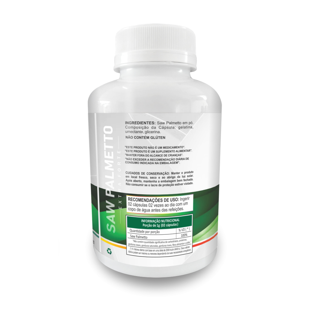 2x Sabal Saw Palmetto Extra Forte 500mg 120 Cápsulas Tabela Nutricional: Valor Calórico 0Kcal, Não possui quantidade significativa de calorias, proteínas, carboidratos, gorduras totais, fibra ou sódio, Apresentação: Saw Palmetto 120 Cápsulas Tree of Life Pote com 120 Cápsulas Kit com 2 frascos Não Contém Glúten Não Contém Aromatizante Sem Açúcar Sugestão de uso Ingerir 2 cápsulas, 2x ao dia. Conservação Após aberto, manter a embalagem bem fechada e armazenar em local fresco, seco (15° a 25°) e ao abrigo de luz. Produto lacrado para sua proteção. Manter fora do alcance de crianças. Produto ISENTO de registro da Anvisa conforme resolução RDC 27 de 06 de agosto de 2010. PRODUTO A PRONTA ENTREGA, ACOMPANHA NOTA FISCAL E POSSUI ENVIO IMEDIATO