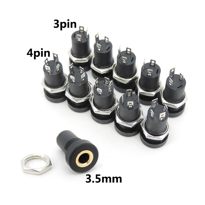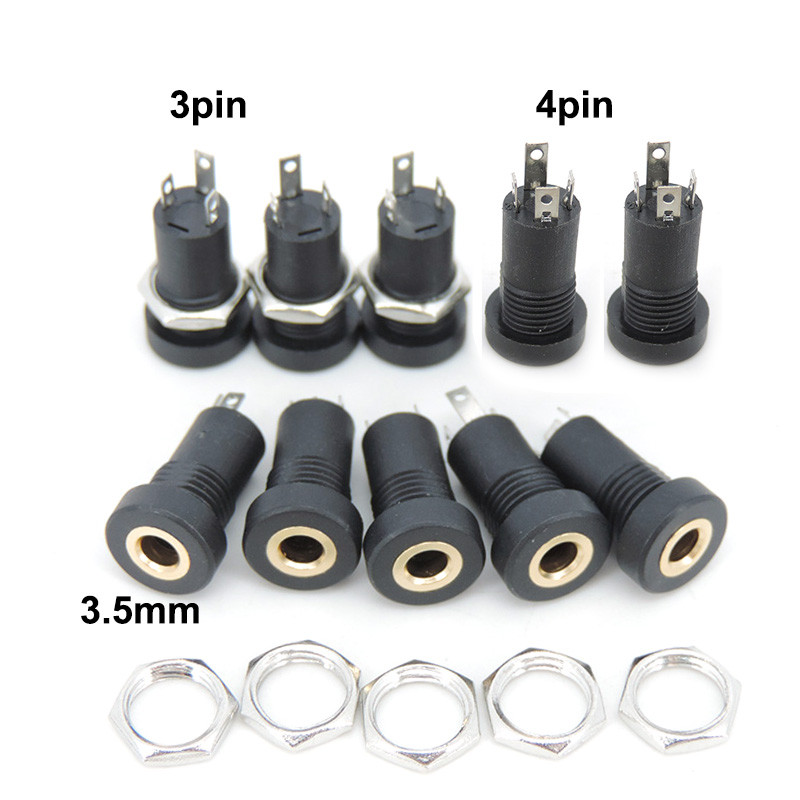 3.5MM 3 Pólos 4 3/4Pin Áudio Fêmea Jack Soquete Estéreo PJ-392A PJ392A Montagem Em Painel De Solda Com Porca Conector Fo