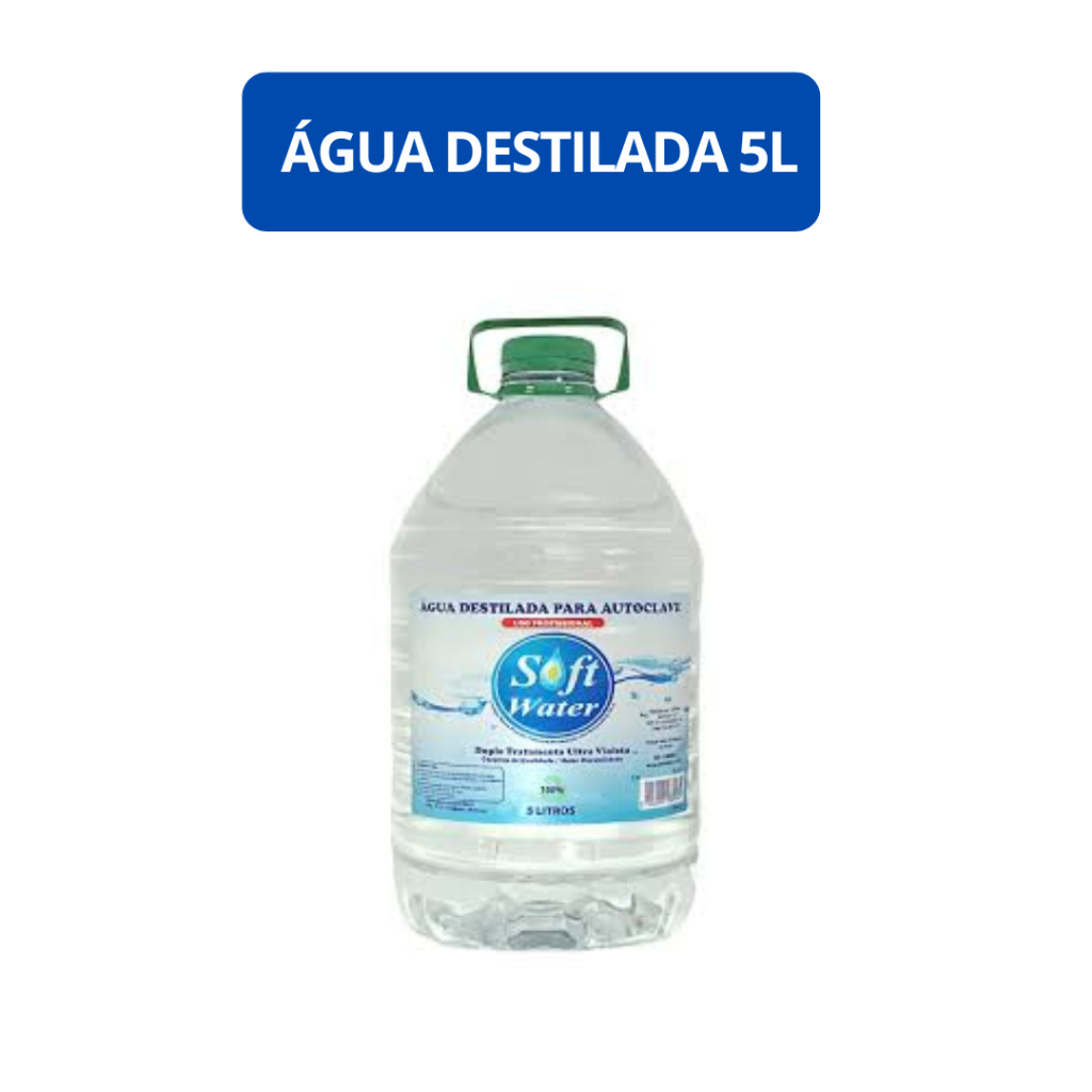 3 ÁGUAS P/AUTOCLAVE 5000 ML É OBTIDA ATRAVÉS DO PROCESSO DE CONDENSAÇÃO DO VAPOR DE ÁGUA POR OUTRO DOIS TIPOS DE PROCESSOS ( EVAPORAÇÃO, EBULIÇAO). – NÃO INJETÁVEL. – NÃO ESTÉRIL E QUIIMICAMENTE PURA. – ISENTA DE SAIS SOLÚVEIS. INDICADA PARA USO EM: – AUTOCLAVES. – CONFECÇÃO DE PRÓTESES E ARTESANATOS. – ENXÁGUE DE VIDRARIA E INSTRUMENTOS. – OUTROS QUE NECESSITEM DE ÁGUA PURA E ISENTA DE SAIS SOLÚVEIS.