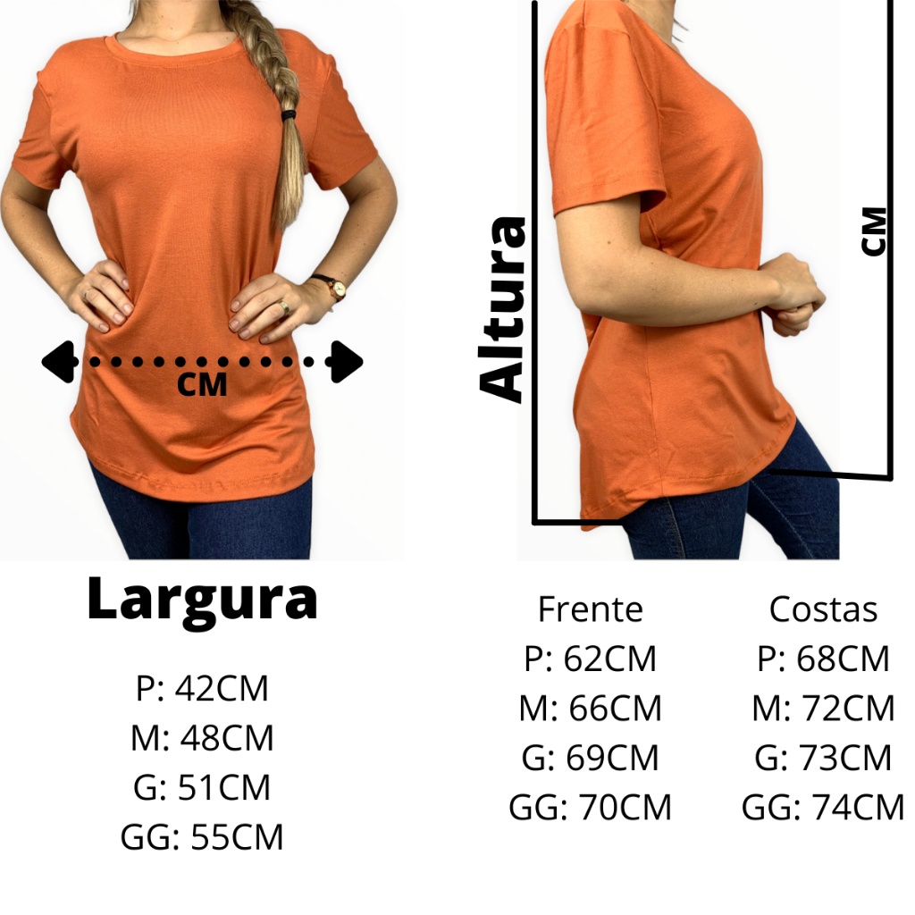Blusas compridas, ótimas para tapa bum bum ou usar sobre legging para uso no dia a dia ou em academias A modelo está usando o Tamanho P, ela tem 1,60 de altura O tecido é a malha viscolycra, bem fresquinha e de qualidade. Ele estica um pouco dando mais conforto Recomendações de tamanhos: P: Veste 34-36 M: Veste 36 caso queira bem folgada e também veste 38 G: Veste 38 caso queira bem folgada e também veste 40 e 42 mais justo um pouco GG: Veste 44 ao 46 com conforto Recomendamos não lavar cores diferentes juntas. O kit contem 3 peças, você seleciona qual kit você deseja acima tem as opções de cores. Não modificamos o kit Para ver as medidas, antes de efetuar a compra, olhe o guia de tamanhos e por favor, não errem o tamanho, para nós e nem vocês terem transtornos! Para adquirir o produto basta você selecionar o tamanho que deseja e o kit cores que gostou Como funciona as trocas? Caso tenha defeitos ou tamanhos não deram certos você pode pedir a troca sem problema, te ajudaremos! Estamos aqui para servir e vestir vocês Espero que gostem das peças, nós da empresa só usamos delas e são ótimas! Perguntas frequentes: Posso lavar em máquinas ou tanquinho? Resposta: Pode sim, mas pode comprometer um pouco da qualidade delas mas as clientes colocam sim em máquinas em não reclamam Elas encolhem? Resposta: Podem encolher de 1-3% As medidas são exatamente iguais? Resposta: Elas podem variar de 2-4CM, pois a costureira pode ter cortado um pedacinho do pano na hora de fazê-las, mas mudará quase nada, imperceptível. Agradecemos a escolha, espero que Ame as peças!