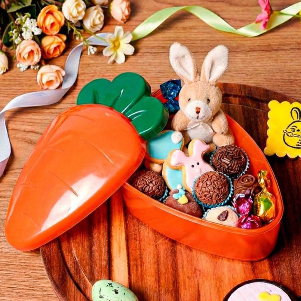 3 CAKE BOX PÁSCOA CENOURA C/ TAMPA (750 mL) LARANJA E VERDE (BLUE STAR)