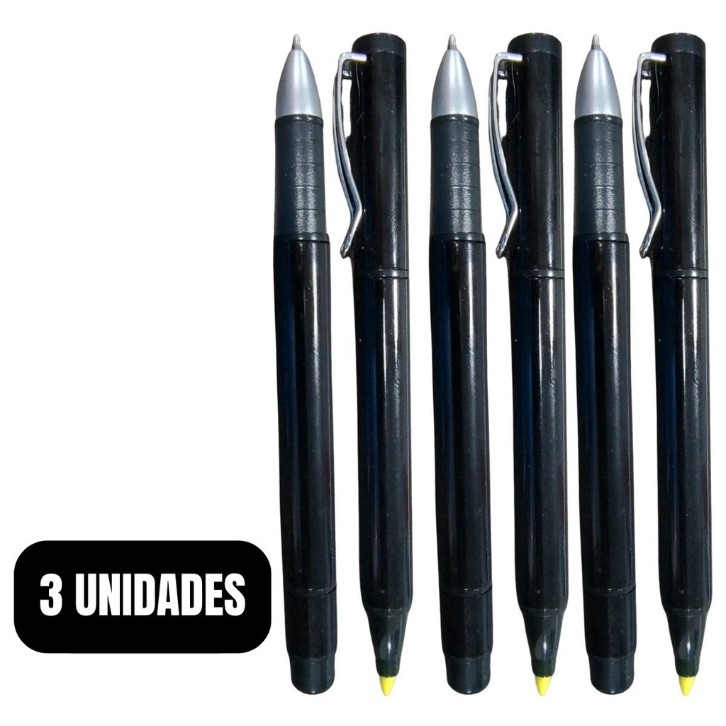 3 Canetas Preta Dupla Marca Texto E Esferografica M3000