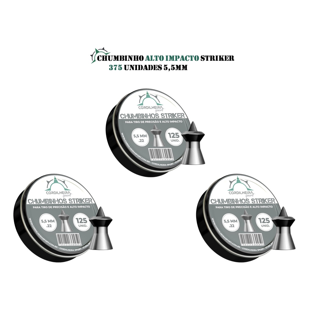 3 Chumbinhos Cordilheira Striker Alto Impacto 5,5mm Kit 3 | 375 Unidades