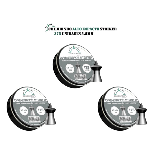 | 3 Chumbinhos Cordilheira Striker Alto Impacto 5,5mm Kit 3 | 375 Uni... este produto | R$ 54,00 | 5% | 4.8/5 | 3 |