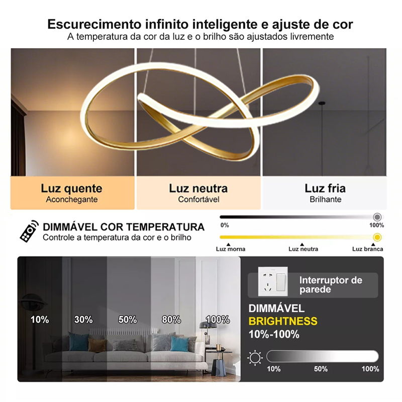 Detalhes do produto do produto: Tipo de produto: luz pingente de controle remoto multifuncional Potência: 40Watts Compatibilidade com tensão: 110V/127V/220V Modelo: LED Acabamento - Acabamento: Artesanato de ferro + acrílico Cor: Dourado - Cor da luz: 3 temperaturas de cor (branco frio/branco quente/natural) Temperatura de operação: -20oC a 50oC Uso: Interior com proteção IP20 (à prova de poeira) - Uso: Interior com proteção IP20 (à prova de poeira) Dimensões: 48cm x 15cm (L x A) Conteúdo da Caixa: 01 unidade Acompanha: Embalagem / Parafusos e plugues / Lustre Garantia de 3 meses O Produto é Novo? Todos os produtos são novos. A entrega imediata? Os produtos anunciados estão disponíveis a pronta entrega. Se o produto não atender minhas necessidades, posso devolver ou trocar? Trabalhamos com satisfação do consumidor. Se você não gostar, pode devolver e reordenar o produto correto, desde que não tenha sinais de uso e esteja em sua embalagem original. Acompanha nota fiscal? Fatura em todos os nossos produtos acompanham nota fiscal. O produto possui garantia? Os produtos são garantidos.