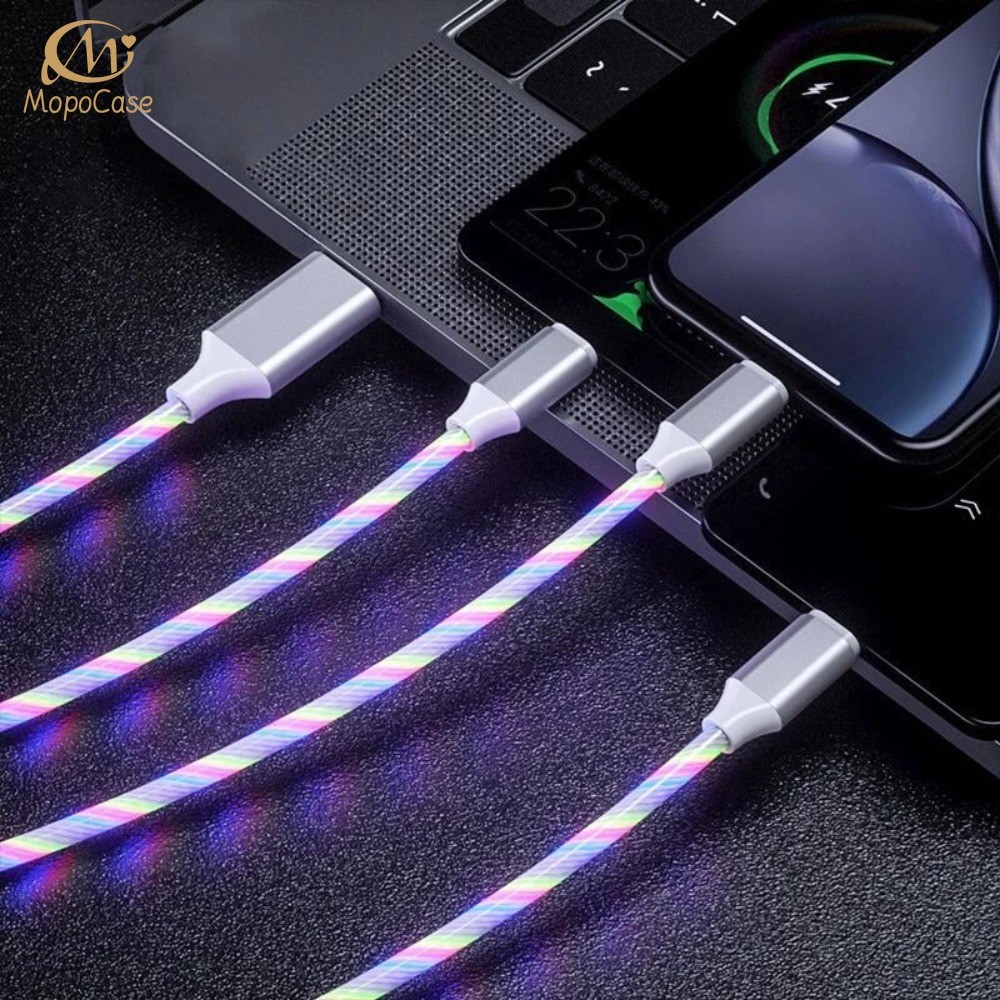 3 Em 1 LED Luz De Fluxo Luminosa Cabo USB 1.2M Carregamento Rápido Tipo-C IOS Micro Colorido Streamer Cabos De Mopo