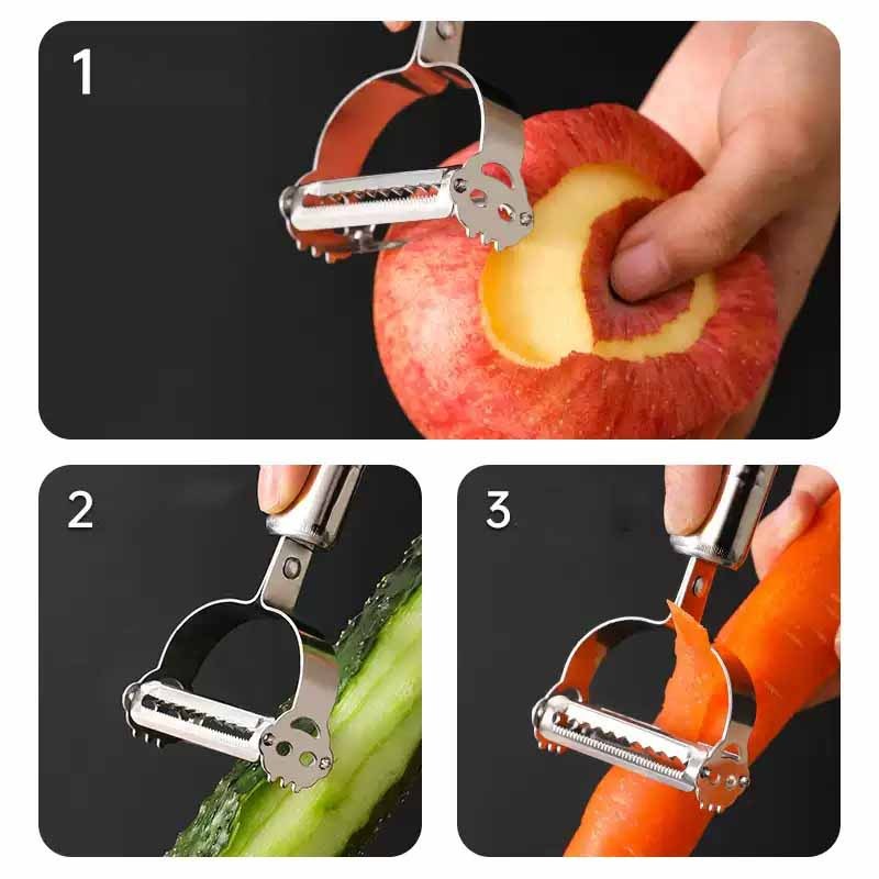 3 Kit Descascador 2 em 1 INOX com Lâmina Dupla Móvel - Para Legumes, Verduras e Frutas | Promoção