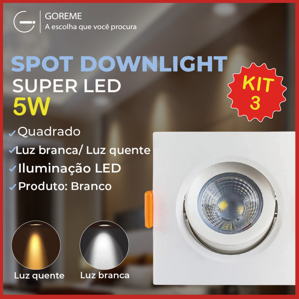 3 Luminária Spot Led Quadrado Direcionável 5W Embutir Gesso Teto |Luz Fria / Luz Quente Bivolt Spot