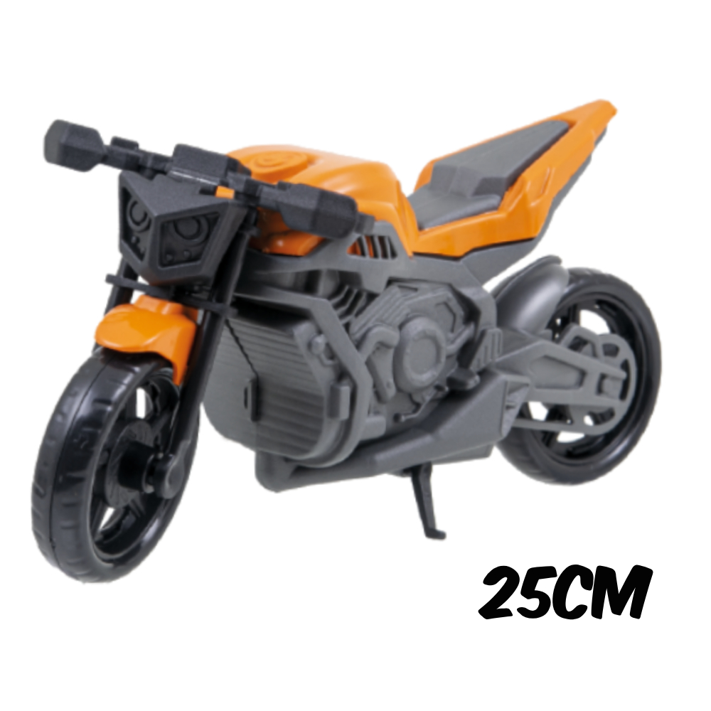 Pacote com 3 Brinquedos Motos Estilo Super Esportivas de Altissima Cilindrada MODELO 1 Comprimento: 18,5 Largura: 7,5 Altura: 9 Cor: Sortido MODELO 2 Comprimento: 24,5 Largura: 9 Altura: 12 MODELO 3 Comprimento: 32 Largura: 11 Altura: 16 Desenvolvimento: Aprendizado pela imitação Coordenação Motora Habilidades Sociais Imaginação e criatividade