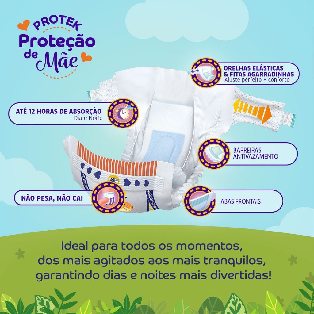 Garanta conforto e proteção com a Fralda PomPom Clássica Econômica M Pacote c/34un. Oferece até 12h de absorção, toque suave e economia para o dia a dia do seu bebê. 👶✨ 🍼 Destaques do produto: 💧 Até 12 horas de proteção contra vazamentos. 🌿 Camada externa macia e respirável para maior conforto. 🧸 Ajuste seguro e confortável que acompanha o movimento do bebê. 💛 Fitas elásticas reposicionáveis, que não machucam a pele. 💰 Excelente custo-benefício para o dia a dia das mamães e papais. ✅ Contém: 3 pacotes com 34 fraldas tamanho M ✅ Linha: PomPom Clássica Econômica