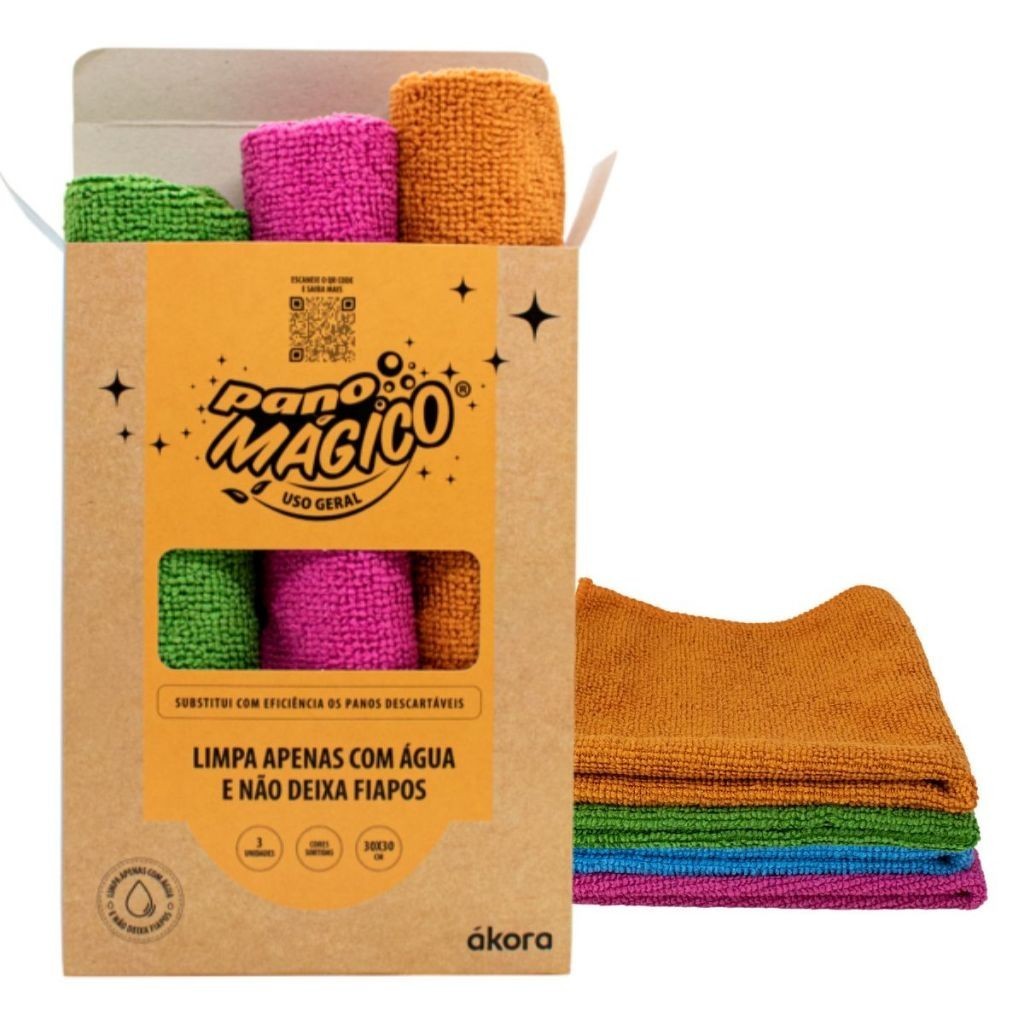 3 Pano Mágico Uso Geral Akora Ecomais Flanela Microfibra de Limpeza Domestica Escritórios e Carros