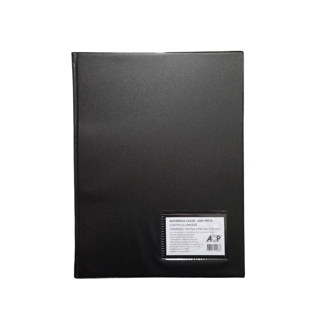 Pasta Catálogo Preta c/ 20 Envelopes Plásticos Finos - ACP - Tamanho A4 Organize seus documentos de forma rápida e eficiente com pastas e fichas! Ao manter seus papéis em ordem, você os acessa rapidamente, sem perder tempo procurando em pilhas desorganizadas. Pastas e fichários são essenciais para manter documentos protegidos e facilmente acessíveis, seja em casa, no trabalho ou em qualquer lugar. Apresentamos a Pasta Catálogo ACP com 20 Envelopes. Perfeita para portfólios, apresentações acadêmicas, folders, catálogos de vendas, coleções e diversos documentos. Ideal para quem busca organização e praticidade!