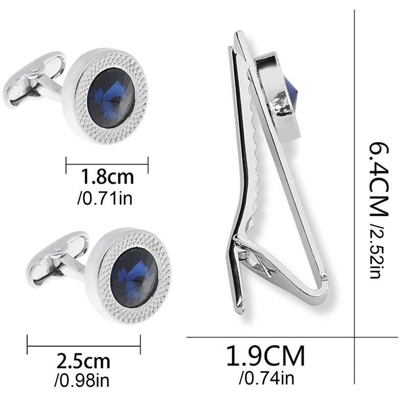 | 3 Pçs Moda Azul Cristal Zircão Abotoaduras E Clipe De Gravata Conju... este produto | R$ 21,42 | — | 5.0/5 | — |