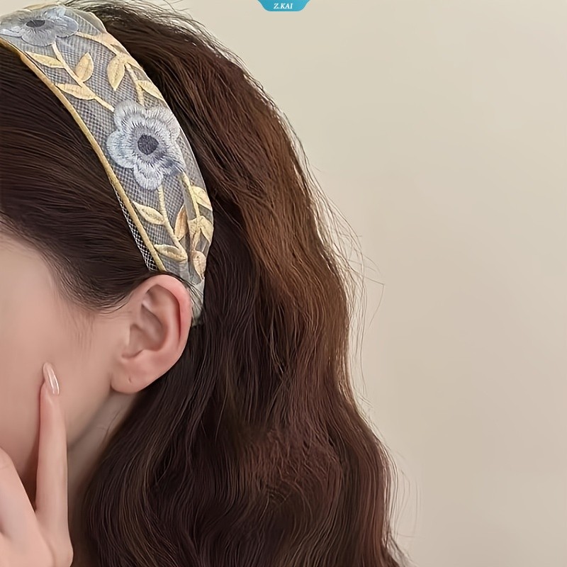 Nova faixa de cabelo bordada estilo étnico bordado faixa de cabeça Vintage gancho de cabelo de borda larga