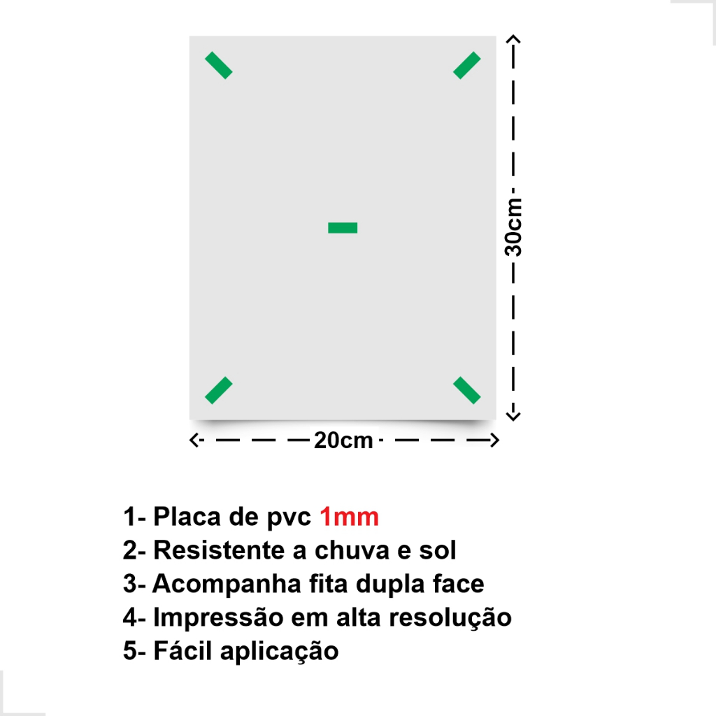 3 Placas Proibido Filmar e Fotografar 20x30cm em PS 1mm Procurando por placas resistentes, com excelente acabamento e preço justo? Conte conosco! Somos líderes de mercado, comprometidos com sua satisfação e oferecendo produtos de qualidade excelente. Junte-se a milhares de clientes satisfeitos com nossas placas de sinalização! ⚙️ ESPECIFICAÇÕES Tamanho: 20x30cm (largura x altura). Material: Adesivo Vinil impresso aplicado em Poliestireno (PS 1mm). Conteúdo da embalagem: 3 Placas e 3 conjuntos de fita dupla face VHB. ⭐️ VANTAGENS Fácil Aplicação: Pode ser fixada em qualquer superfície limpa e lisa. Leveza, durabilidade e flexibilidade garantidas. Acabamento profissional. Resistente à água e umidade para uso interno e externo. Versátil: pode ser serrada, cortada, parafusada, etc... 🔍 DÚVIDAS FREQUENTES É RESISTENTE? -Sim, o PS de 1mm é bem resistente e durável. PODEM PERSONALIZAR PARA MIM? -Não, este produto já está pronto e embalado. DÁ PARA COLAR EM PORTÃO DE GRADE? -Sim, desde que a superfície seja limpa e lisa. DÁ PARA FURAR? -Sim, é possível furar para fixação. VOCÊS FURAM PARA MIM? -Não, esse produto já está pronto e embalado. Não seria possível personalizar a furação para cada cliente. TEM OUTROS TAMANHOS? -Sim, entre em contato e nossa equipe providenciará as opções disponíveis. 🏭 Fabricação Própria, Especializada em Placas