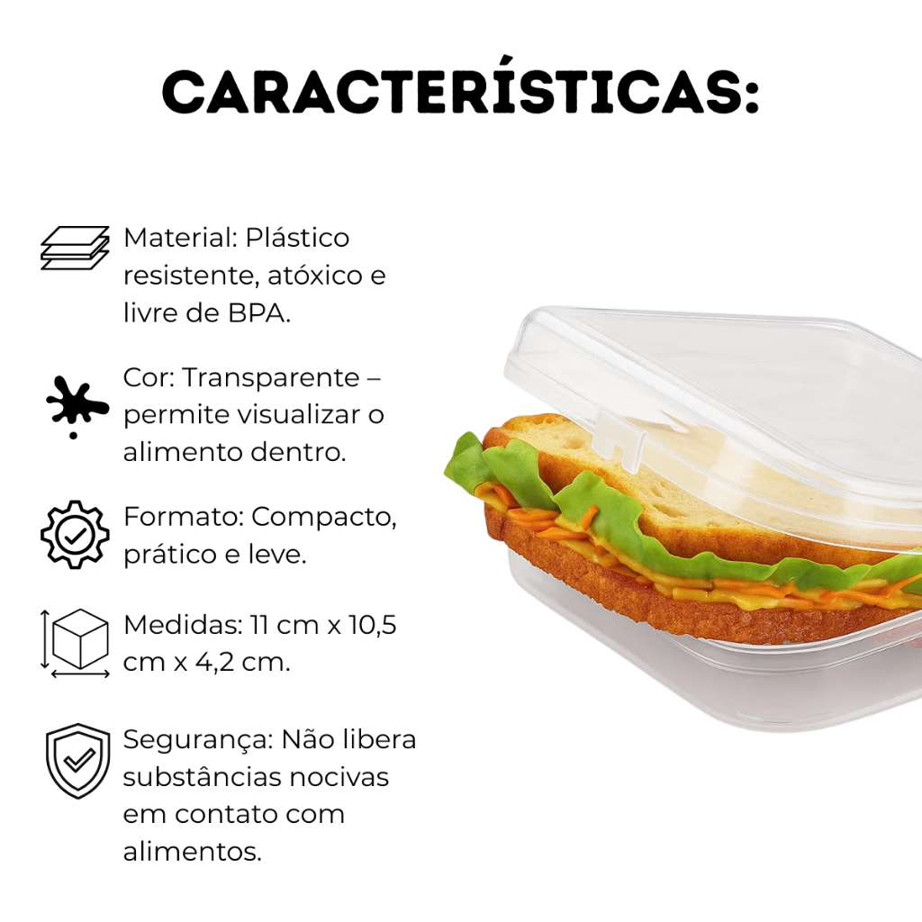 3 Porta Lanches Sanduíches Transparente - Livre BPA
