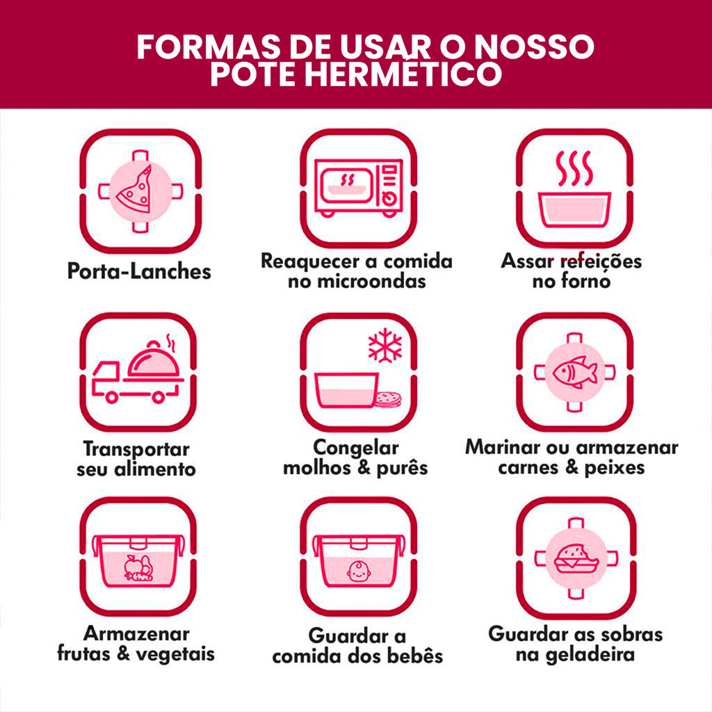 Bem-vindo à Ladiv Comercial, o seu destino definitivo para encontrar os melhores utensílios, gadgets e acessórios para tornar a sua experiência culinária mais eficiente, divertida e inspiradora. Nós nos dedicamos a oferecer uma seleção cuidadosamente curada de produtos de alta qualidade que irão elevar o seu jogo na cozinha. Pote Hermético Marmita Com Divisória e Tampa com trava: Segurança e praticidade no armazenamento de alimentos Características: Os potes com tampas herméticas são perfeitos para o dia a dia, garantem o melhor sabor, não fica com cheiro indesejado e você pode esquentar no Microondas ou Forno (Tire a tampa nesses casos), ideal para quem trabalha e leva o alimento de casa, ou para guardar diversos alimentos na geladeira/freezer. Além do mais, é fácil de lavar e super resistente. Benefícios: - Vidro Borosilicato; - Vai ao forno (sem tampa), microondas (sem tampa) e freezer; - Anel de silicone removível; - Mantém os alimentos frescos por mais tempo; - Evita que o cheiro se espalhe; - Sem risco de vazamento; - Possui travas; - Fácil de limpar e higienizar; - Super Resistente. Especificações: - Pote hermético, material em vidro; - Tampa, material em vidro. ✅ O que você recebe: • 1 Pote 370ml • 1 Pote 640ml • 1 Pote 1040ml Cuidados: - ATENÇÃO; não vai ao micro-ondas - Utilize sabão neutro e esponja macia para higienizar - Não utilizar materiais abrasivos na limpeza Obs: Cores enviadas conforme disponibilidade Qualquer dúvida estamos a disposição