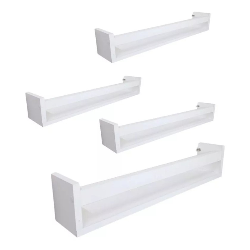 Kit com 3 Prateleiras para livros e brinquedos, com 60cm de comprimento e 10cm de profundidade. Fabricado em MDF Branco de 15mm de alta qualidade! DIMENSÕES: 3 Prateleiras em U: 60cm Comprimento x 10 Altura x 10 Profundidade Acompanha buchas e suporte para instalação. ATENÇÃO: Temos outros tamanhos com ótimos preços. Desejando outras medidas é só deixar no comentário que enviamos o anuncio para compra.