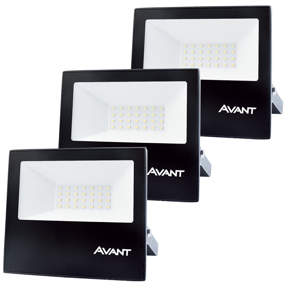 3 Refletor Led Luz Branca 6500K Bivolt 30w Prova de Água Iluminação Externa Avant