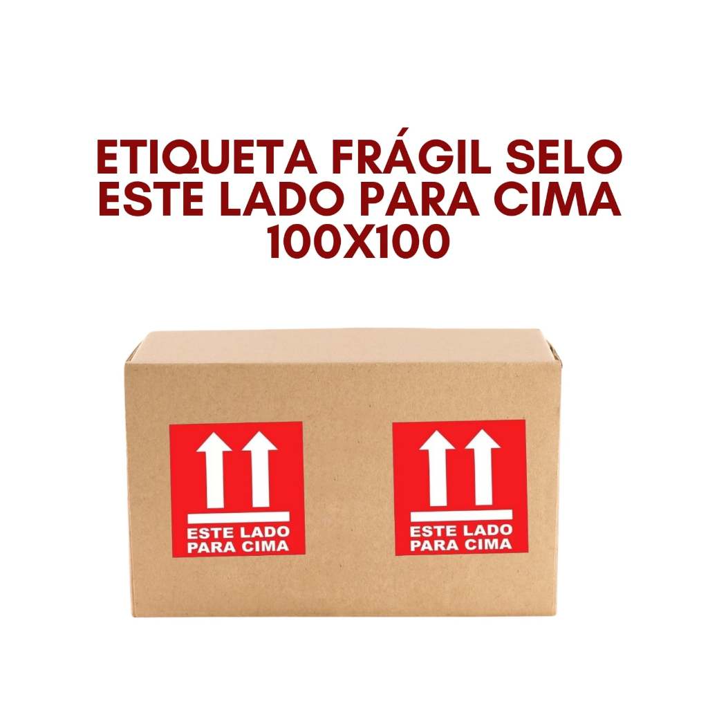 ETIQUETAS ADESIVAS SELO FRÁGIL ESTE LADO PARA CIMA CAIXA COM 3 ROLOS ROLO COM 500 ETIQUETAS 100x100mm (10x10cm) ESPECIFICAÇÕES Papel: Couche Largura: 10cm(100mm) Altura: 10cm(100mm) Quantidade de etiquetas por rolo : 500 etiquetas 52 Metros lineares UTILIZAÇÃO Transportes de mercadorias e identificação de caixas.