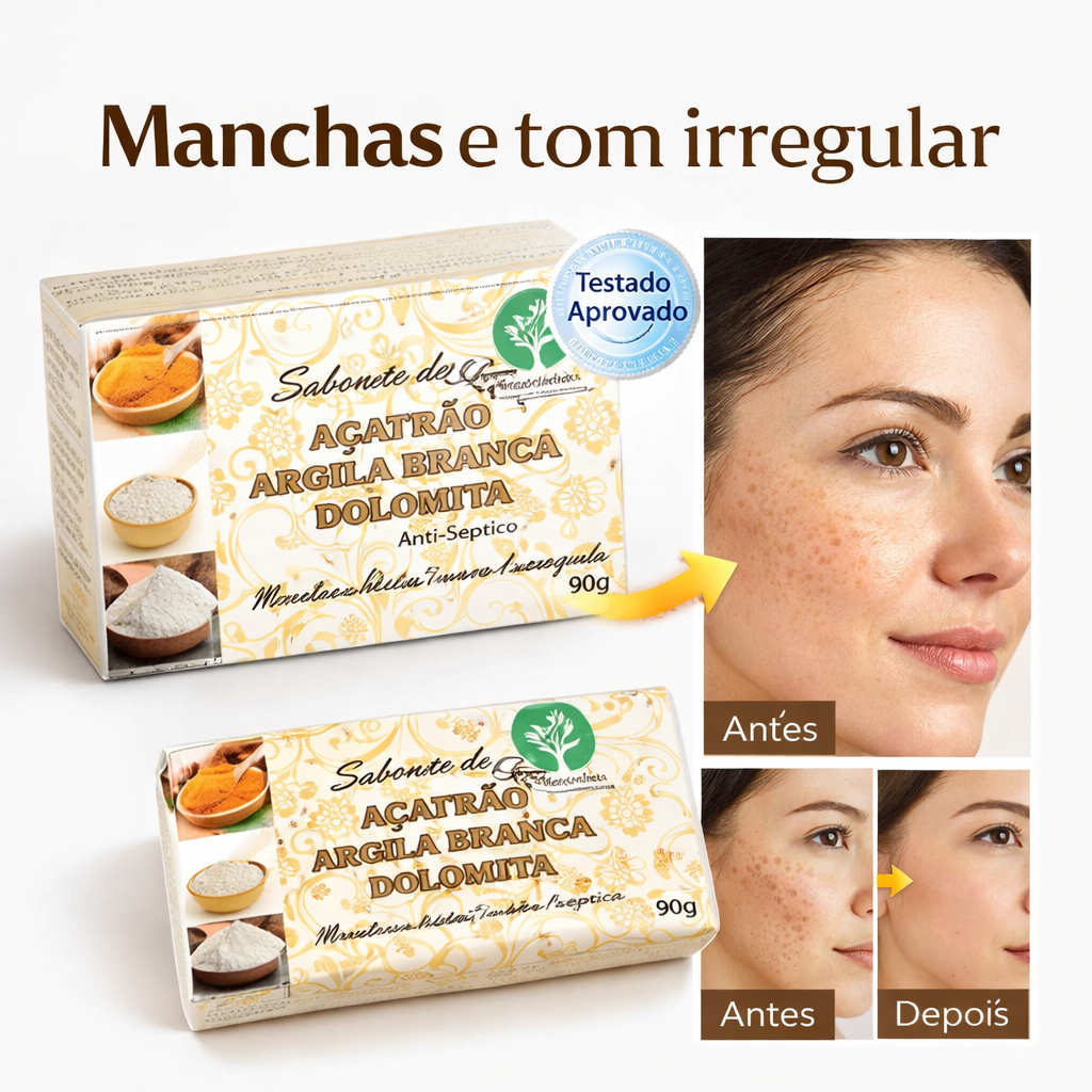 Sabonete de Açafrão com Argila Branca e Dolomita | Anti-séptico Natural | Controle da Oleosidade, Acne e Manchas O Sabonete de Açafrão, Argila Branca e Dolomita é ideal para quem busca controle da oleosidade, auxílio no tratamento da acne leve, redução de cravos e espinhas e uniformização do tom da pele, inclusive em áreas escurecidas. Sua fórmula natural promove limpeza profunda sem ressecar, ajudando a equilibrar a pele do rosto e do corpo com o uso diário. 🌿 Para que serve este sabonete? ✔️ Controlar oleosidade excessiva ✔️ Auxiliar no combate à acne leve, cravos e espinhas ✔️ Ajudar no clareamento de manchas e áreas escurecidas ✔️ Uniformizar o tom da pele ✔️ Promover pele mais limpa, macia e equilibrada 🌱 Ingredientes naturais Açafrão: conhecido por sua ação antioxidante e uniformizadora da pele Argila branca: limpeza profunda, controle da oleosidade e suavidade Dolomita: ajuda no equilíbrio da pele e na regeneração natural 🧴 Modo de uso 1️⃣ Molhe a pele 2️⃣ Aplique o sabonete diretamente ou nas mãos até formar espuma 3️⃣ Massageie suavemente a região desejada 4️⃣ Enxágue bem ➡️ Usar 1 a 2 vezes ao dia, no rosto e no corpo. 📍 Indicações Pele oleosa Acne leve Cravos e espinhas Manchas e áreas escurecidas Axilas, virilha, parte interna da coxa, joelhos e cotovelos
