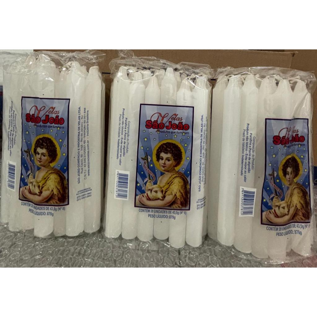 3 Sacos com 20 und - Vela 7 horas N°8 Branca - São João - 500g - 60 Undidades