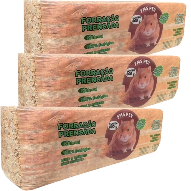3 Serragem Maravalha Prensada 800g Para Roedor Pássaro Equino