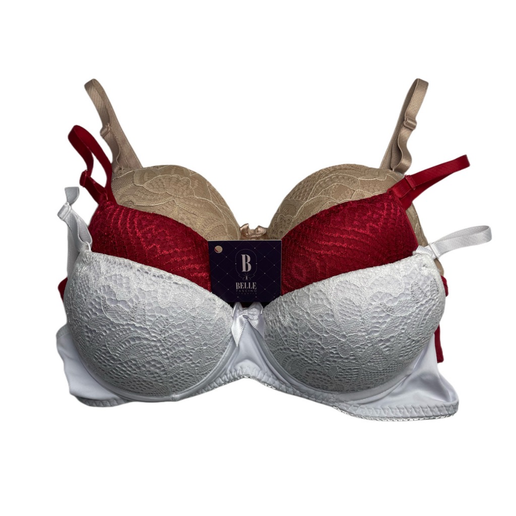 ESSE ANUNCIO SE REFERE AO KIT COM TRÊS SUTIÃS COM BOJO CONFORTO - POR FAVOR, SELECIONAR UM DOS KIT PRÉ-MONTADOS OU SE QUISER OUTRA COMBINAÇÃO DE CORES, ESCOLHER CORES VARIADAS E NOS ENVIAR AS CORES DESEJADAS POR CHAT OU COLOCAR NA OBSERVAÇÃO. - Consultar cores disponíveis no tamanho desejado. Modelo Básico de Sutiã com Bojo, super versátil e de ótimo caimento. Esse sutiã é confeccionado com bojo em renda, possui bojo e aro. A lateral é feito em tecido de poliamida light super macio e confortável. É revestido em uma linda e delicada renda, que deixa a peça com um toque de romance e sensualidade. Possui alças reguláveis e fecho colchete com regulagem dupla nas costas. O modelo do sutiã é básico, mas trás um ar elegante e sofisticado, uma vez que possui uma aparência bem romântica e um acabamento muito refinado que garante uma peça bonita e prática para o dia a dia de todas as mulheres. CORES: PReto, Branco, Chocolate, Vrmelho, Rosa Pink, Romance, Lilas, Verde Claro, Laranja, Azul Marinho *** TAMANHOS DISPONÍVEIS: P - M – G – GG *** ***TABELA DE MEDIDAS*** Tamanho - Busto - Tórax P (34-36) | 85-89 cm | 61-71 cm M (38-40) | 90-94 cm | 69-78 cm G (42-44) | 95-99 cm | 79-83 cm GG (44-46) | 100-104 cm | 84-88 cm *** PRODUTO FABRICADO NO BRASIL*** *** GARANTIA BELLE FASCINO LINGERIE*** *** Atenção: Pode haver variação nas cores por conta de fatores como iluminação fotográfica e brilho de cada monitor. ** - TIRE TODAS AS SUAS DÚVIDAS, ANTES DE EFETUAR A COMPRA.