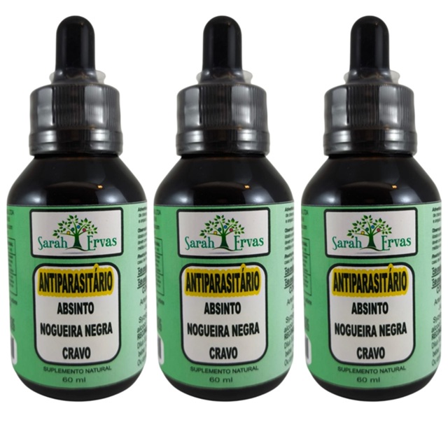 | 3 Tintura Antiparasitária 60mL - (Absinto, Nogueira negra e Cravinho) este produto | R$ 135,00 | — | 5.0/5 | — |