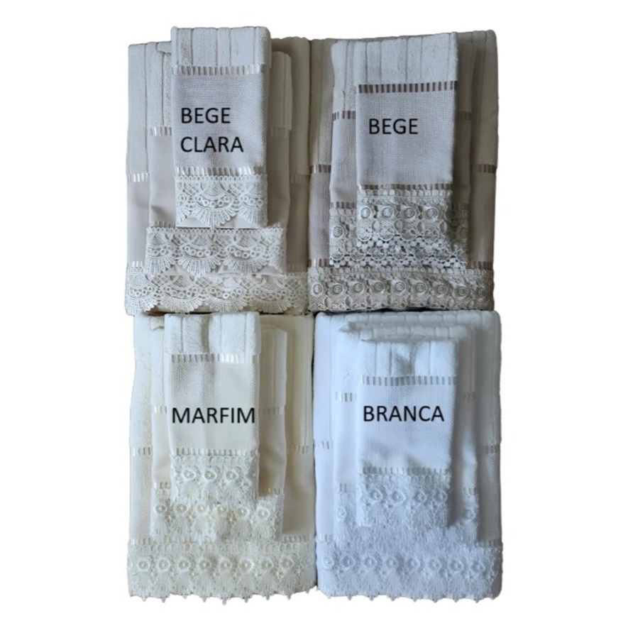 3 Toalhas BORDAR - 1 banho, 1 rosto e 1 lavabo com renda guipir - Bella Dohler