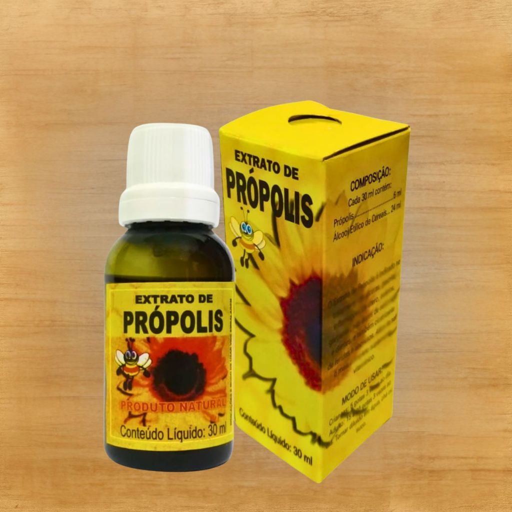 Extrato de Própolis Puro em Gotas 30ml – Natural e Concentrado O Extrato de Própolis Puro é um produto natural conhecido por seu alto poder antioxidante e protetor do organismo, contribuindo para o bem-estar diário e a imunidade natural. Produzido com própolis selecionada e álcool de cereais, esse extrato é tradicionalmente utilizado como apoio natural ao equilíbrio do corpo e pode ser consumido diluído em água ou suco. Benefícios Tradicionalmente Associados: Suporte à imunidade natural Ação antioxidante e protetora Produto natural e concentrado Ideal para uso diário Composição: Própolis: 6ml (20%) Álcool Etílico de Cereais: 24ml (80%) Modo de uso sugerido: Adultos: 15 a 20 gotas, 3 vezes ao dia Crianças acima de 5 anos: 5 gotas, 3 vezes ao dia Dissolver em água, mel ou suco natural. Informações do produto: Produto Natural conforme a Farmacopeia Brasileira Isento de registro – Art. 28, Decreto nº 79.094/1977 Fabricante: Fazenda Alegre – GO Conteúdo: 30ml por frasco Validade: 36 meses Você está adquirindo: 3 unidades de Extrato de Própolis Puro 30ml