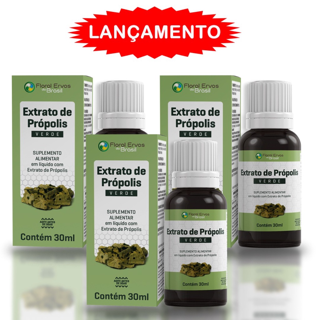 Composição: Própolis verde e álcool neutro. Extrato seco mínimo 11% Não contém glúten EXTRATO DE PRÓPOLIS VERDE FLORAL ERVAS DO BRASIL Produzido com própolis verde da mais alta qualidade. Esse própolis especial é obtida a partir de uma planta nativa do Brasil, a Baccharis dracunculifolia (Vassourinha ou Alecrim do Campo). Trata-se de um produto amplamente estudado por pesquisadores no Brasil e no exterior, principalmente no Japão. Ela possui, além dos tradicionais componentes da própolis, alta quantidade de artepillin C, substância a qual pesquisas japonesas atribuíram grande atividade antitumoral. QUAIS OS BENEFICIOS DO PRÓPOLIS? - O Própolis é um ótimo antisséptico e anti-inflamatório e, também, ajuda a melhorar o fluxo sanguíneo e oxigenação de várias partes do corpo. Sendo ingerindo pequenas quantidades junto a sua dieta, você pode aumentar a força do seu sistema imunológico, devido os efeitos do Extrato de Própolis Verde antivirais e antibacterianos. Estas são apenas alguns dos benefícios deste excelente suplemento alimentar. A PARTIR DE QUANTOS ANOS POSSO FAZER O USO? - Grupo populacional 19 anos acima ADVERTÊNCIAS: “ESTE PRODUTO NÃO DEVE SER CONSUMIDO POR GESTANTES, LACTANTES E CRIANÇAS.” “ESTE PRODUTO NÃO É UM MEDICAMENTO.” “ESTE PRODUTO É UM SUPLEMENTO ALIMENTAR.” “MANTENHA FORA DO ALCANCE DE CRIANÇAS.” “NÃO EXCEDER A RECOMENDAÇÃO DIÁRIA DE CONSUMO INDICADA NA EMBALAGEM.” CUIDADOS DE CONSERVAÇÃO: Manter o produto em local fresco, seco e ao abrigo da luz solar. Após aberto, mantenha a embalagem bem fechada. Não consumir se o lacre de proteção estiver violado. SUGESTÃO DE USO: Ingerir 10 (dez) gotas 2 (duas) vezes ao dia Produto dispensado de registro no ministério da saúde conforme RDC ANVISA 23/00,240/18 e IN 28/18
