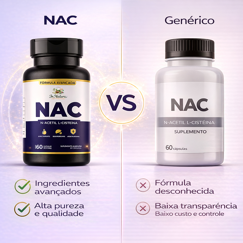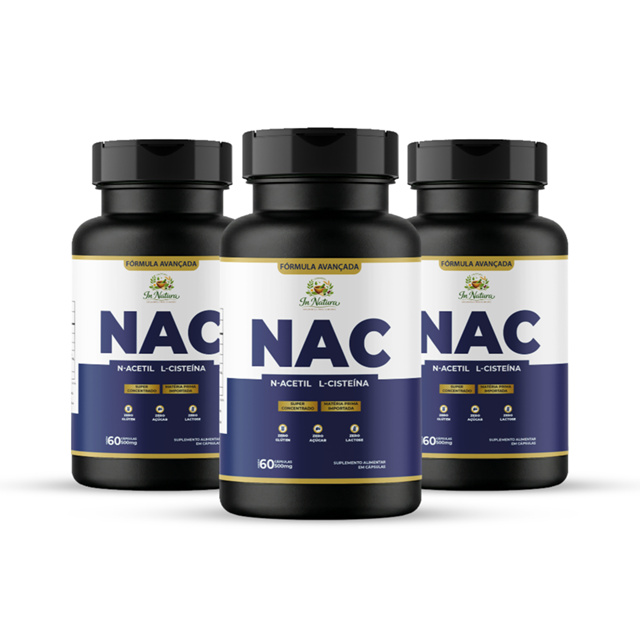 Kit 3 Potes NAC (N-Acetil L-Cisteína) – 180 Cápsulas cada Mais proteção, energia e vitalidade para o seu corpo! O NAC (N-Acetil L-Cisteína) é um dos antioxidantes mais estudados e recomendados por especialistas. Essencial para quem busca reforçar a imunidade, proteger o fígado, melhorar a saúde respiratória e combater o envelhecimento precoce. Além disso, apoia o bem-estar mental e contribui para mais disposição no dia a dia. Principais Benefícios Fortalece a imunidade → mais resistência contra doenças. Protege o fígado → auxilia no processo natural de detoxificação. Antioxidante poderoso → combate radicais livres e retarda o envelhecimento precoce. Melhora a saúde respiratória → auxilia na fluidificação das vias aéreas. Apoio cerebral → participa da produção de glutationa, importante para equilíbrio mental. Informações do Produto Composição: N-Acetil L-Cisteína pura e de alta qualidade. Apresentação: 3 frascos com 60 cápsulas cada. Sugestão de uso: 1 a 2 cápsulas ao dia ou conforme orientação profissional. Indicação: Uso adulto. Não contém: glúten, lactose, corantes ou conservantes artificiais. Por que escolher o NAC? Porque ele vai além de um simples suplemento: o NAC é referência em saúde preventiva, performance esportiva e proteção celular. Reconhecido pela ciência, seguro e eficaz, é a escolha ideal para quem deseja mais energia, vitalidade e longevidade. Produto original com nota fiscal | Envio imediato | Compra 100% segura!